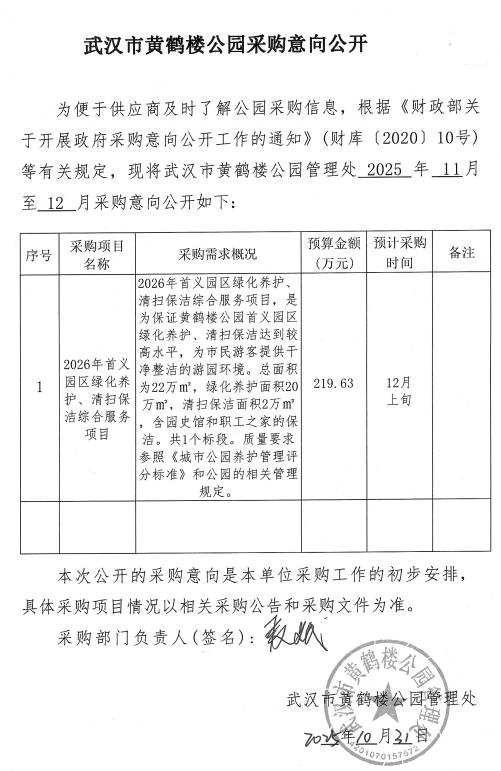 武汉市黄鹤楼公园采购意向公开(参考文本)