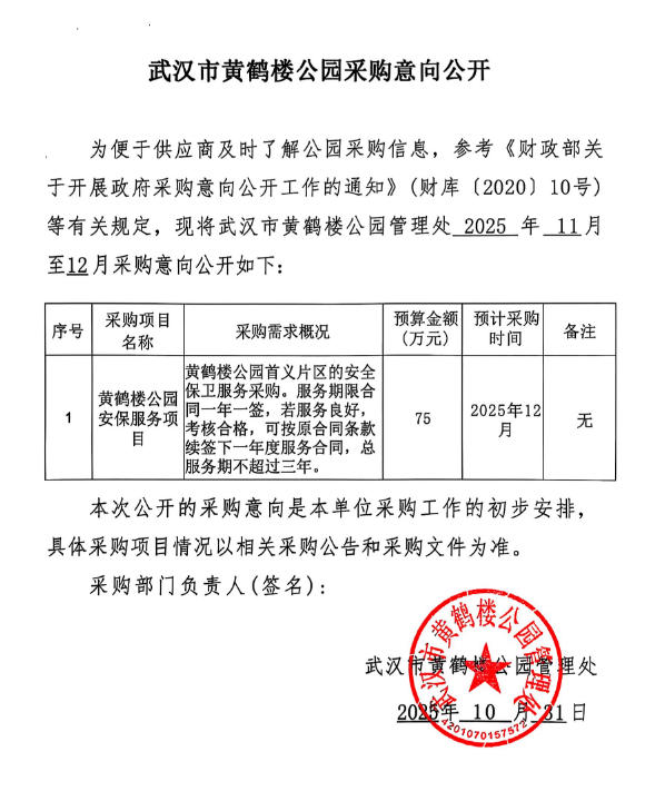 武汉市黄鹤楼公园采购意向公开(参考文本)